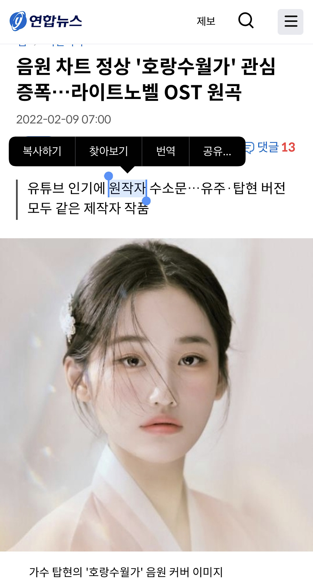 올초쯤 호랑수월가라는 씹떡 노래 커버곡이 인기를 끌고 기사까지 나옴