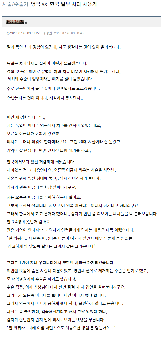 치과진료 경험담 한국 vs 영국